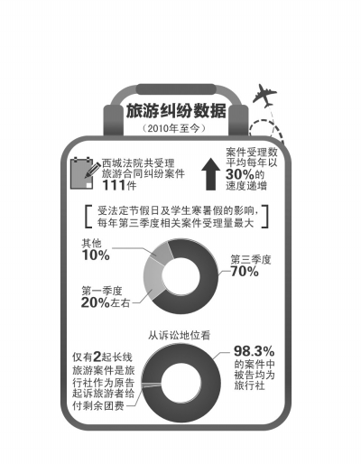 从案件所涉争议点来看,因旅行社不合理增收费用、减少和变更旅游项目、擅自“转团”等引发的常规性旅游纠纷所占比例在逐年减少,新类型案件的涉诉比重逐年增长。