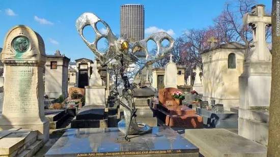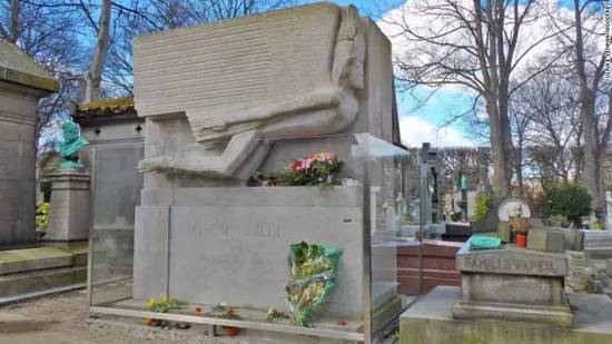 蒙巴纳斯街区曾在法国文化艺术史上领过几十年风骚,如今风韵犹存、依然能引起许多人怀旧眷念。这里的公墓以独特风格著名,图中墓碑名为“猫”,是著名艺术家桑法勒为纪念两名朋友而建。