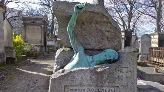 图为比利时著名作家罗登巴赫的坟墓,一名青铜雕像仿佛要破土而出,看上去虽然有些恐怖,但充满了艺术气息。