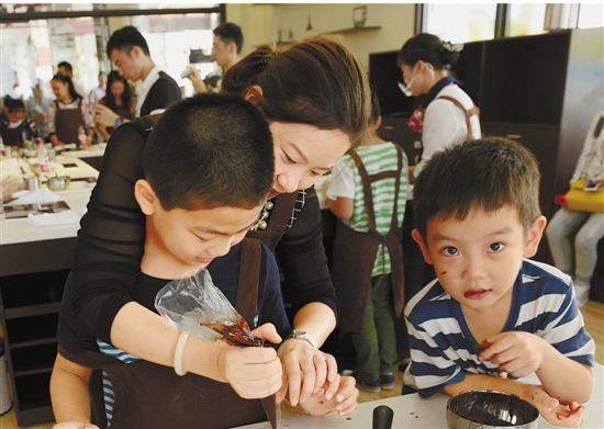 孩子们在体验制作巧克力。