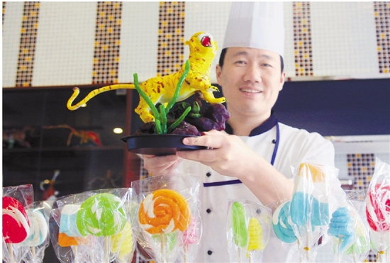 巧克力小镇内的糖果制作师制作的惟妙惟肖的糖果动物。