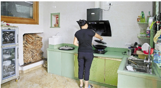 “看,这厨房可以两用的。”记者注意到,新居的灶头很特别,既现代又不失传统,灶头的左边是用瓷砖贴起来的土灶,刚好能放一个大锅,右边是一个煤气灶。老人说,一个人在家就用煤气烧饭菜。家里人多的时候他就用土灶烧。“土灶烧饭一辈子了,吃惯了用柴火烧出来的香味。”老人说。灶头边有一个2米×2米大的格子,里面放着许多柴火。