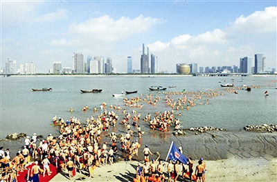 杭州市救生协会秘书长张英杰表示,今年的活动会搞得热闹些,前几年的所有活动都安排在北岸,南岸只是个下水点,今年将采取南北岸联动的方式,水上活动也将更加精彩。