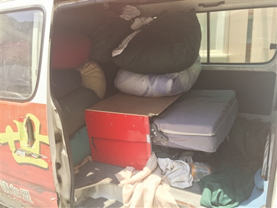 洗涤后的“布草”就这样堆在车里。