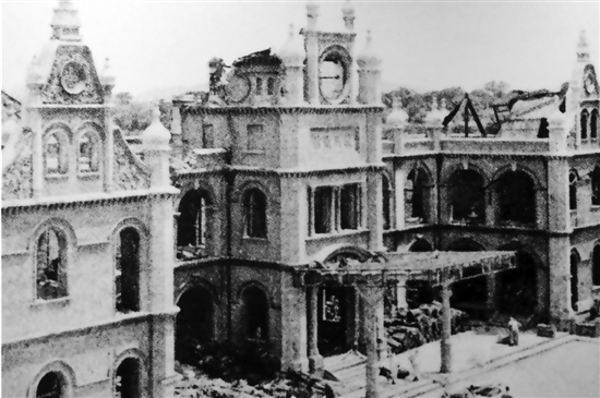 “七七事变”后不久,日本飞机开始对浙江实施狂轰滥炸。这是被日军飞机轰炸后的杭州火车站,就是杭州人嘴里的城站。