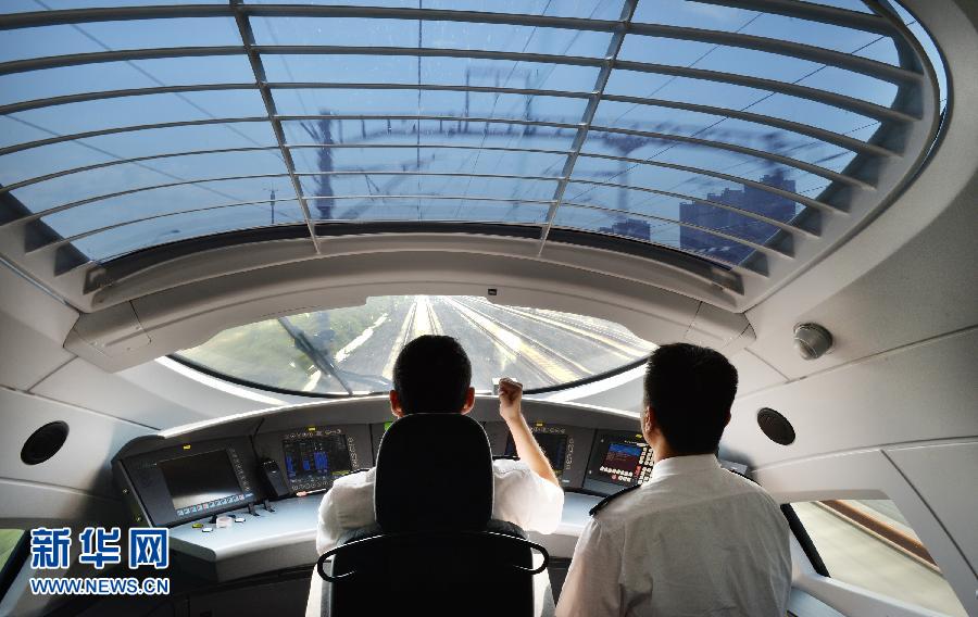 8月27日,试跑动车组列车司乘人员按正式开通流程标准作业。目前,京津城际铁路延伸至于家堡工程已完成运行图参数测试、应急演练和故障模拟等试验内容,进入“按运行图行车”试验阶段。试验动车组列车按正常开行动车组标准落实作业流程和作业标准,司乘人员、站车服务人员按正式开通标准做好各项准备工作。京津城际铁路延伸至于家堡工程设计时速350公里。线路自天津站城际车场引出,沿途经军粮城北站、塘沽站至于家堡站。新华社发(杨宝森摄)