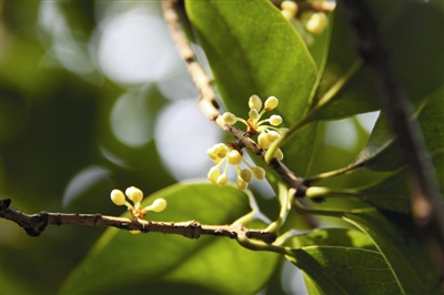 这两日30℃左右的气温着实令人舒服,杭城“第一桂”也神气地开花了呢。在杭州少儿公园左手转弯几步路的地方,就有这么一棵“骄傲”的小桂花树,挂着“第一桂”的身份牌,小米粒大小的花苞已经陆陆续续打开了,明亮的黄色一簇一簇聚在一起,甚是可爱。在这株明星桂对面还有一株桂花树,同样是早银桂品种,也不甘落后,散发着满树的清香。