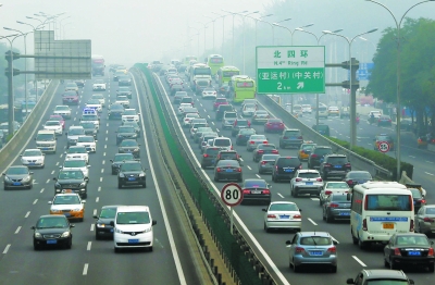 10月7日下午,京藏高速上清桥至北沙滩路段进京方向车流量增大、行驶缓慢,从6日午间开始的国庆长假返城高峰仍在持续。记者孙戉摄