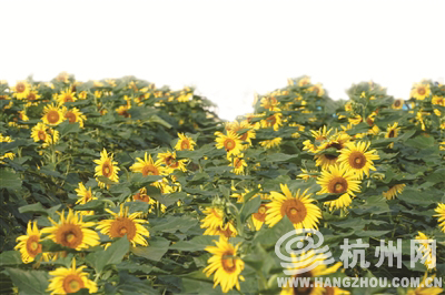 浙江工商大学下沙校区综合楼右边的近30亩地里,种了10多万株向日葵。这几天,向日葵开成了一片金色的海洋,伴着空气中的桂花香,心情也跟着舒展开来。