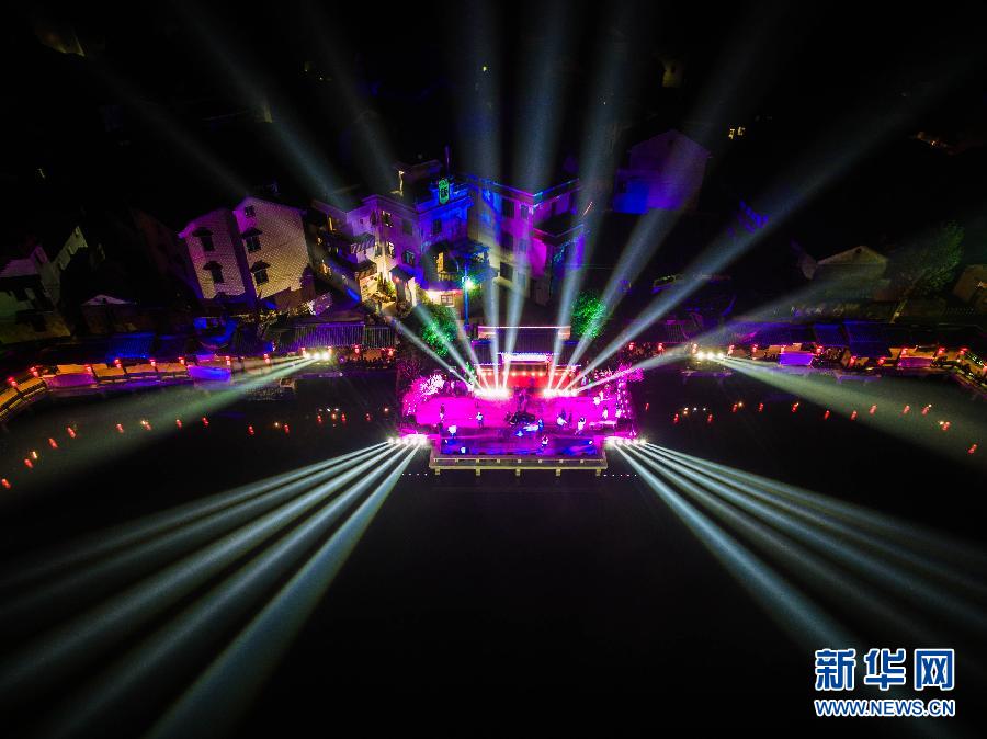 10月19日,西班牙当代青年钢琴家马里奥·阿隆索在深澳古村的水上舞台进行钢琴专场演奏会。当日,西班牙青年钢琴家钢琴演奏会在浙江省桐庐县千年古村深澳村的水上舞台举行,这场传统村落与欧洲音乐家的“对话”为秋夜的江南古村增添了独特的文化韵味。新华社记者徐昱摄