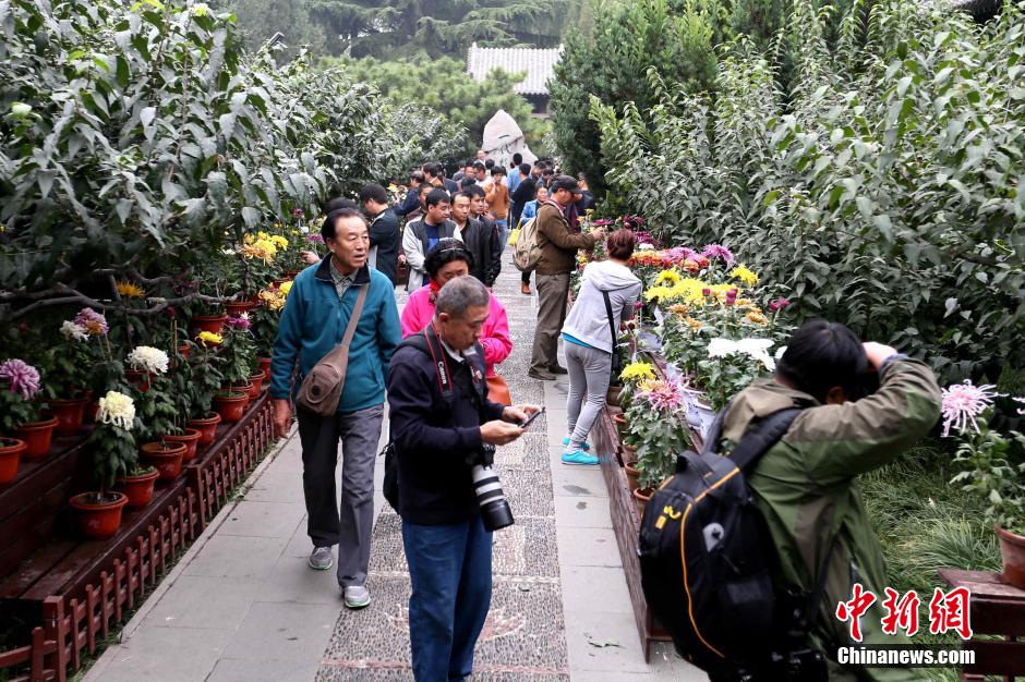 10月22日,以“花开盛世·菊韵泉城”为主题的济南市第三十六届趵突泉金秋菊展在泉城济南拉开帷幕。有来自本市16家单位和外地13家参展单位设置的菊花小景、造型、扎菊、大立菊、大悬崖菊、品种菊、专项品种菊、案头菊、盆景菊9个展项,500余个菊花品种、23组菊花造型和小景、共10万余盆菊花一起扮靓天下第一泉风景区。图为当日清晨开园不久,便引来众多游客拍照、参观。程吉童摄
