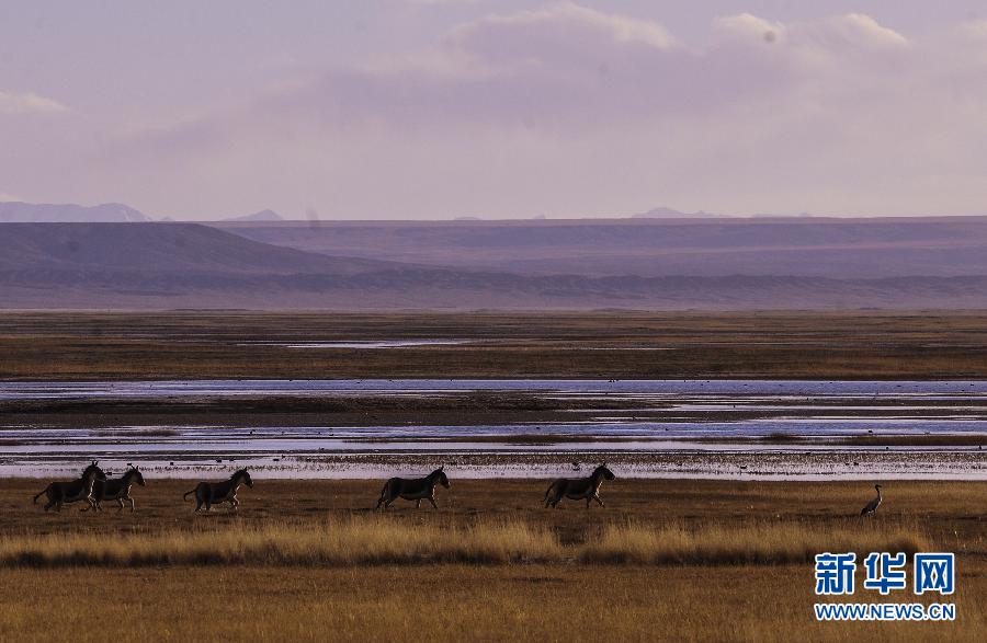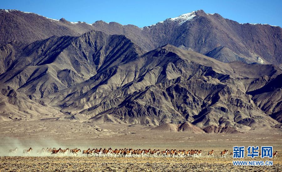 奔跑在阿尔金山国家级自然保护区内的野驴群(10月17日摄)。金秋十月,高原天气逐渐转凉,与罗布泊、可可西里和羌塘齐名的中国四大无人区之一——阿尔金山国家级自然保护区进入了一年中较为适合进入的季节。新华社记者宋振平摄