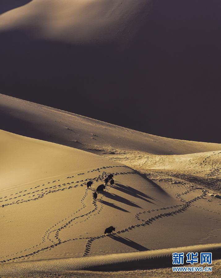 10月17日,野牦牛在阿尔金山国家级自然保护区内的沙山上行走。金秋十月,高原天气逐渐转凉,与罗布泊、可可西里和羌塘齐名的中国四大无人区之一——阿尔金山国家级自然保护区进入了一年中较为适合进入的季节。新华社记者沈桥摄