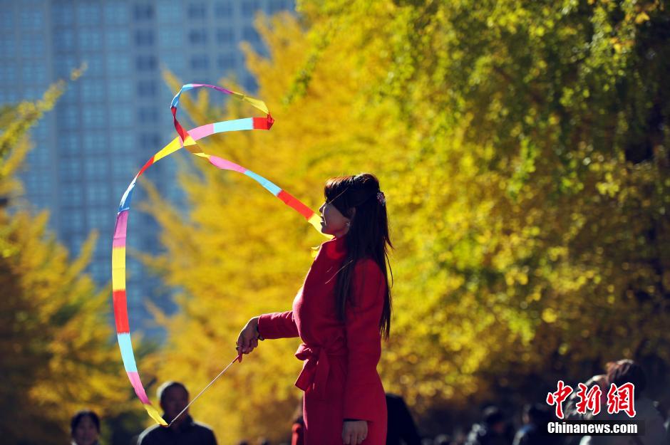 辽宁银杏进入最佳观赏期 吸引人群前来赏景