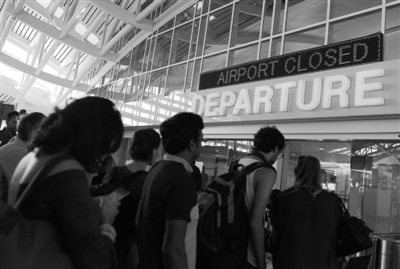 11月5日,在印尼巴厘岛伍拉莱机场,旅客排队向工作人员询问延误航班的最新信息。印尼龙目岛一座火山4日凌晨喷发,导致邻近的巴厘岛伍拉莱机场从4日起持续关闭,预计6日才会开放。
