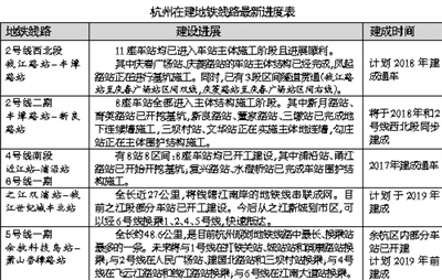 杭州地铁集团昨天还通报了各条在建线路的最新进程。至2019年,杭州将建成1、2、4、5、6共5条线路,总长190公里,有至少20个换乘站,初步形成杭州市城市轨道交通基本网络。