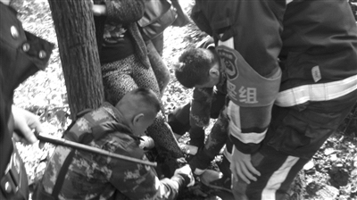 被夹地点位于动物园对面的山上,山不高,但丛林茂密,山路婉转,消防员赶到时,看到求助人站在一块茶叶地旁的树丛边,从山路到这个丛林之间,并没有路。