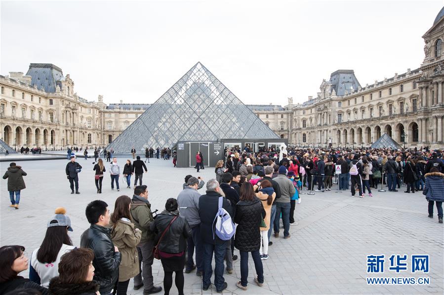11月16日,游客在法国巴黎卢浮宫前排队等待参观。新华社记者徐金泉摄