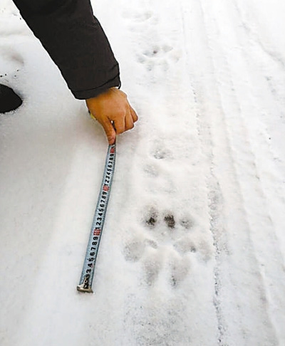 近日,黑龙江小北湖国家级自然保护区境内发现野生东北虎踪迹。从足迹(如图,牟景君摄)判断,这是一只成年雄虎,体重约200公斤。目前,黑龙江省林业厅派专家在当地跟踪监测。