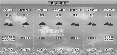 大冬天里,最让人烦恼的就是寒冷和雨水的双重打击。出门在外,冷冷的冰雨在脸上胡乱地拍,回到家里摸着潮湿的衣裤,不由得感慨自己的衣服还是少了些。抬头望着天空,你会发现今天也是个阴天,明天,是二十四节气中特别重要的一个节气——冬至,预示着寒冷大幕的开端,根据气象台的预报,未来几天,杭城天气将在阴或雨之间切换。