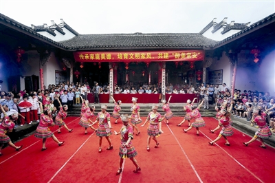 富阳常安镇按照“因地制宜、继承传统、适应时代、培育特色”的要求,依托农村文化礼堂,采取“挖掘+推广”“自办+义送”“培育+志愿”的模式,大力培育“传统文化、群众文化、爱心文化”三位一体的特色礼堂文化,各类活动风生水起,特色礼堂文化遍地生花。