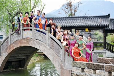 近日,临安市河桥古镇风景区举办旗袍秀活动,50多名旗袍爱好者身穿各色旗袍,穿梭在白墙黛瓦、小桥流水的古镇春色之中,展示中国传统服饰的独特魅力,吸引了众多游人的眼球。