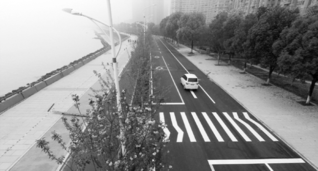 如今,这里已经焕然一新。记者在东信大道至信诚路一带看到,原来的沿江步行道已拓宽到了5米,原来绿化带以北的机动车道被改造成了专用的跑道和自行车道。跑步道是蓝色的,宽2.5米;自行车道是红色的,宽3米,而绿化带以南改成双向通行的机动车道、非机动车道及人行道。