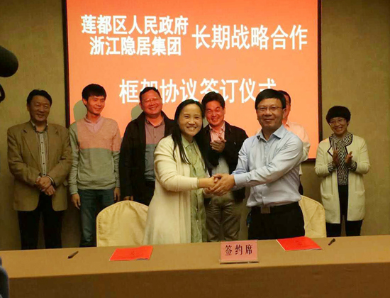4月19日,丽水莲都区人民政府与浙江隐居集团签订长期战略协作协议,进一步达成合作意向,共同推进乡村旅游、民宿经济发展。丽水市委常委、莲都区委书记葛学斌以及莲都区领导杨秀清、谷江南等出席签约仪式,莲都区委副书记周海忠主持仪式。