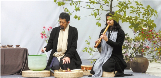 与旗袍的优雅呼应的是华顶讲寺里举行的“三声万物”心灵雅集。主办方称“三声”意为:杜鹃在绽放的声音、茶叶在茶水中舒张的声音和古寺梵音。花道、茶道、香道、梵乐、书画……传统文化通过传统艺术表现形式体现出来,展现的是一种心灵与视觉的撞击。本次雅集邀请了中国茶文化的使者银汉晴、歌者丘三强等名家,首次将华顶的花、茶、乐结合在一起,现场的嘉宾都沉浸在禅境之中。
