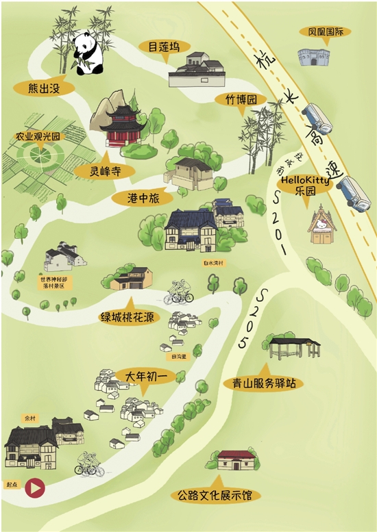 和余村相似,依托201省道、306省道,七彩灵峰区域已演变为国家级旅游度假区,附近的农民成了工人,传统农产品摇身变为销路广阔的旅游商品,闻名于世的安吉“美丽乡村”品牌孕育出多种美丽经济形态,这种变化,与安吉的美丽经济交通走廊建设密不可分。