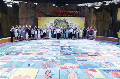以小小的环保棒冰棍为基本材料,发挥家长与孩子们的无限创意,进行拼图设计制作,听起来是不是很有意思?昨天上午,在杭州野生动物世界万人马戏表演场,来自全省的33家幼儿园亲子家庭的千余位代表,将亲手制作的100块动物拼图放入指定位置,现场完成了一幅面积达100平方米的“百兽图”。