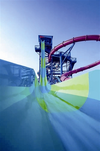 记者在其官方网站上看到,大喇叭和巨兽碗的组合玩法,曾荣获年度“全球最佳水上游乐设备”金票奖,游玩者分4人一组,乘特制的浮筏冲向巨大的喇叭状水滑道中,急速滑行带来的刺激快感让人难忘。