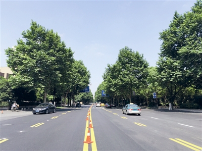 据西湖区城管局绿化工程师杜亮亮介绍,曙光路由于上层是较大的遮荫树——法国梧桐,属于背荫道路,所以在保俶路沿线相对阳光好一些的北侧,增种了一些色叶树木,例如红枫、早樱、鸡爪槭等,多一些色彩元素。机动车和非机动车隔离带种植了书带草与黄花石蒜,到9月初石蒜盛开,很养眼。