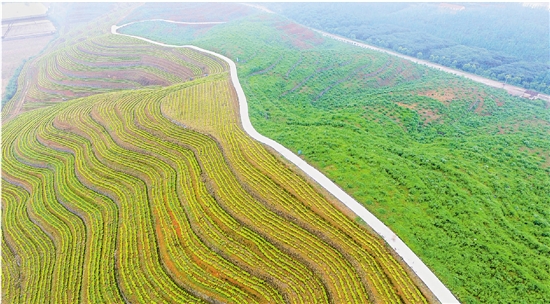 6月15日,湖州市吴兴区埭溪镇东红村,一条全长5公里的水泥道路已经铺设完成,环绕该村千亩茶山。