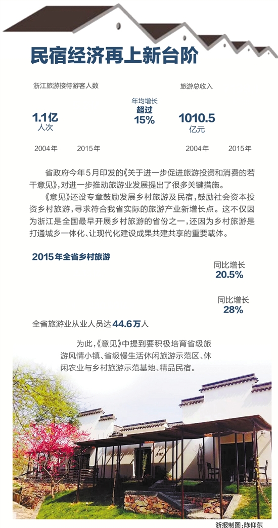 如今,德清、桐乡、杭州等地相继制定民宿管理标准,这也给出信号:与其单打独斗,不如顺势利用工商资本来丰富各地民宿经营的市场经验。王龙江说,他们正在和富阳文村商讨19栋新建民房打包经营民宿的项目,如何打造泛娱乐化的民宿目的地,前期要做非常慎重的考虑,特别是G20峰会以后,浙江一带民宿的客源会有更多国际友人,这需要中国的民宿和国际接轨。培育旅游人才和制定标准,关乎标准化,大到乡村面貌的整体包装,小到一件旅游纪念品的细致打磨,都必须细加考虑。